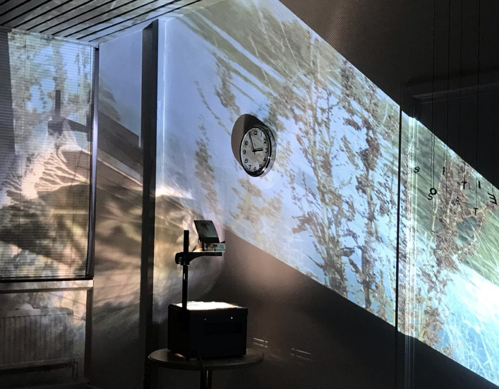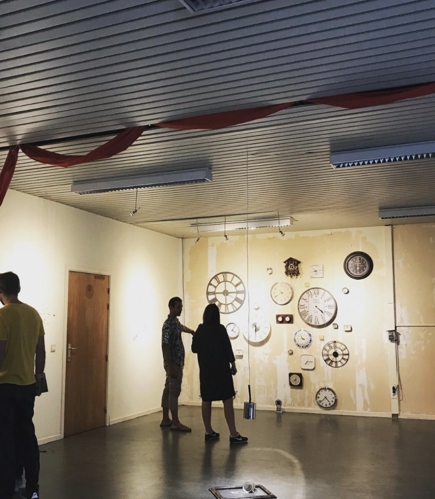 L’installation se compose des horloges murales à la sonorité amplifiée, accordées pour évoquer les battements du cœur construits par Eric Mersch. Elle intègre également des mobiles de lettres qui – comme un jeu et interagissent avec des paysages filmés à Bruxelles et Amsterdam par Alex Cepile lors d’une résidence artistique en partenariat avec le Théâtre Munganga.