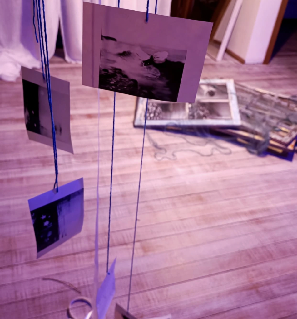 À travers un dialogue entre les images et la mémoire de Silvia Alcantara et de sa famille, à la fois à partir de photos réelles et de clichés générés par l’IA, Aline a reconstitué cet imaginaire en utilisant des fils, des tissus, des objets récupérés et des matières organiques trouvées lors de promenades, ainsi que des mots cousus à partir d’entretiens avec les habitants du lieu.